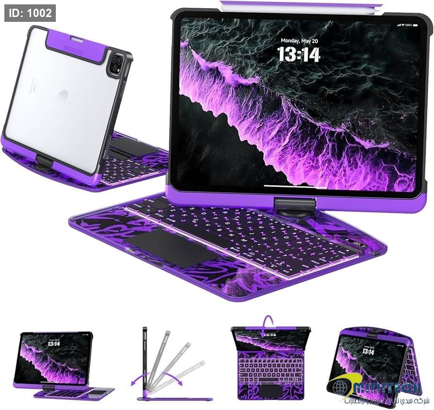 كيبورد حافظة شفافة بلوحة مفاتيح سحرية دوارة لجهاز iPad A 16