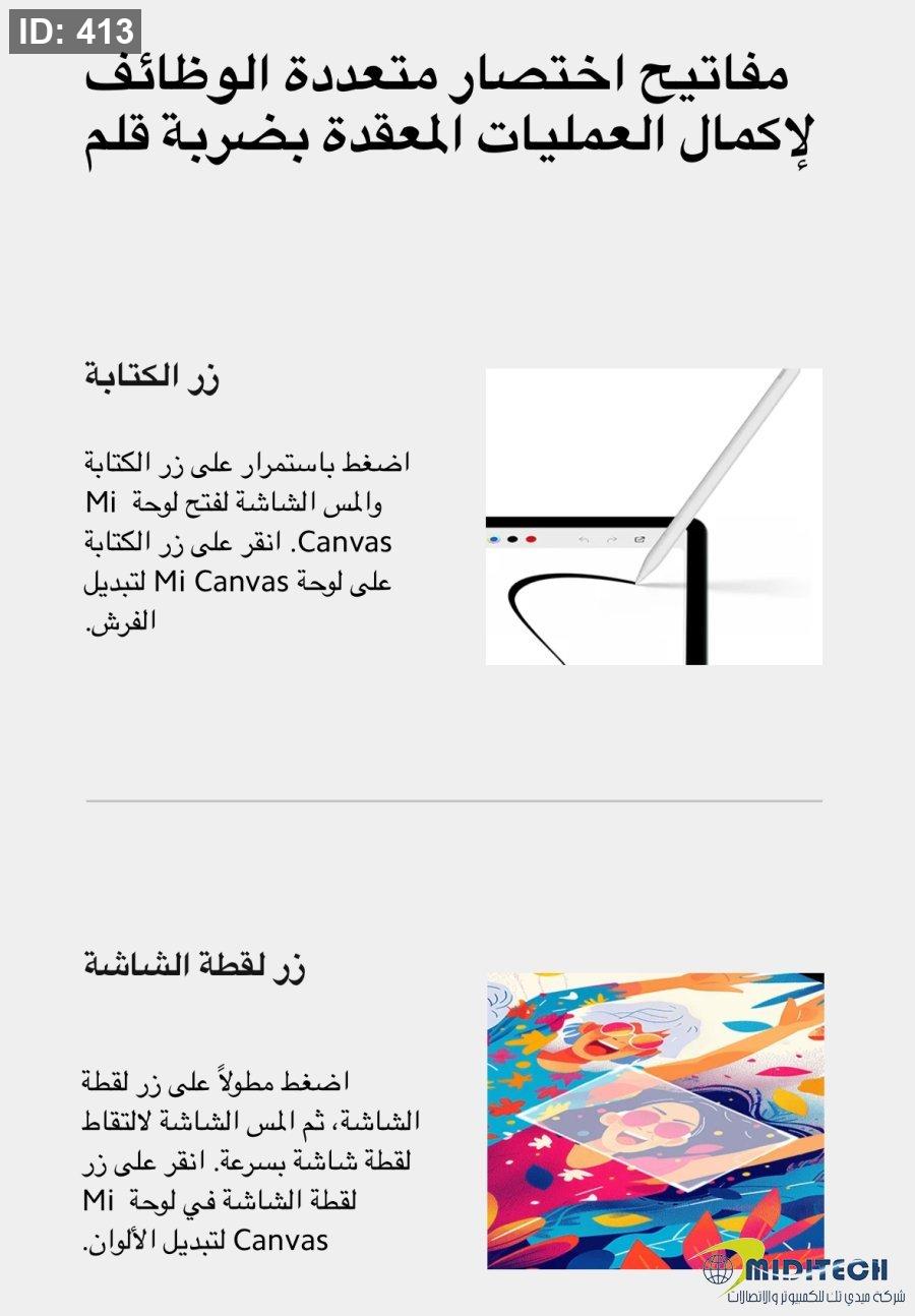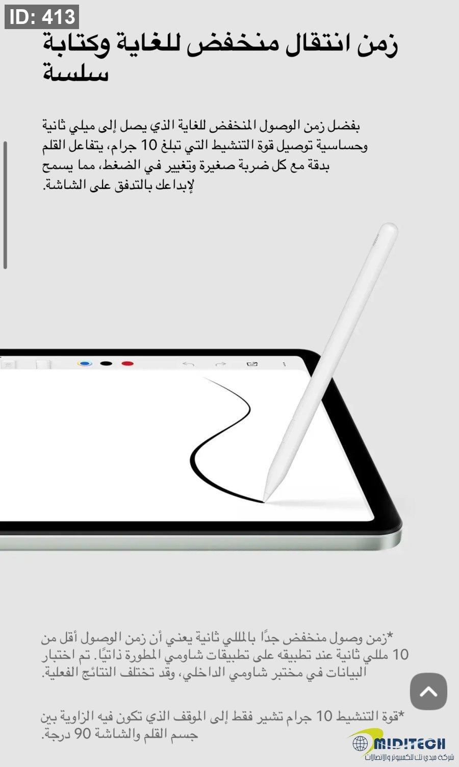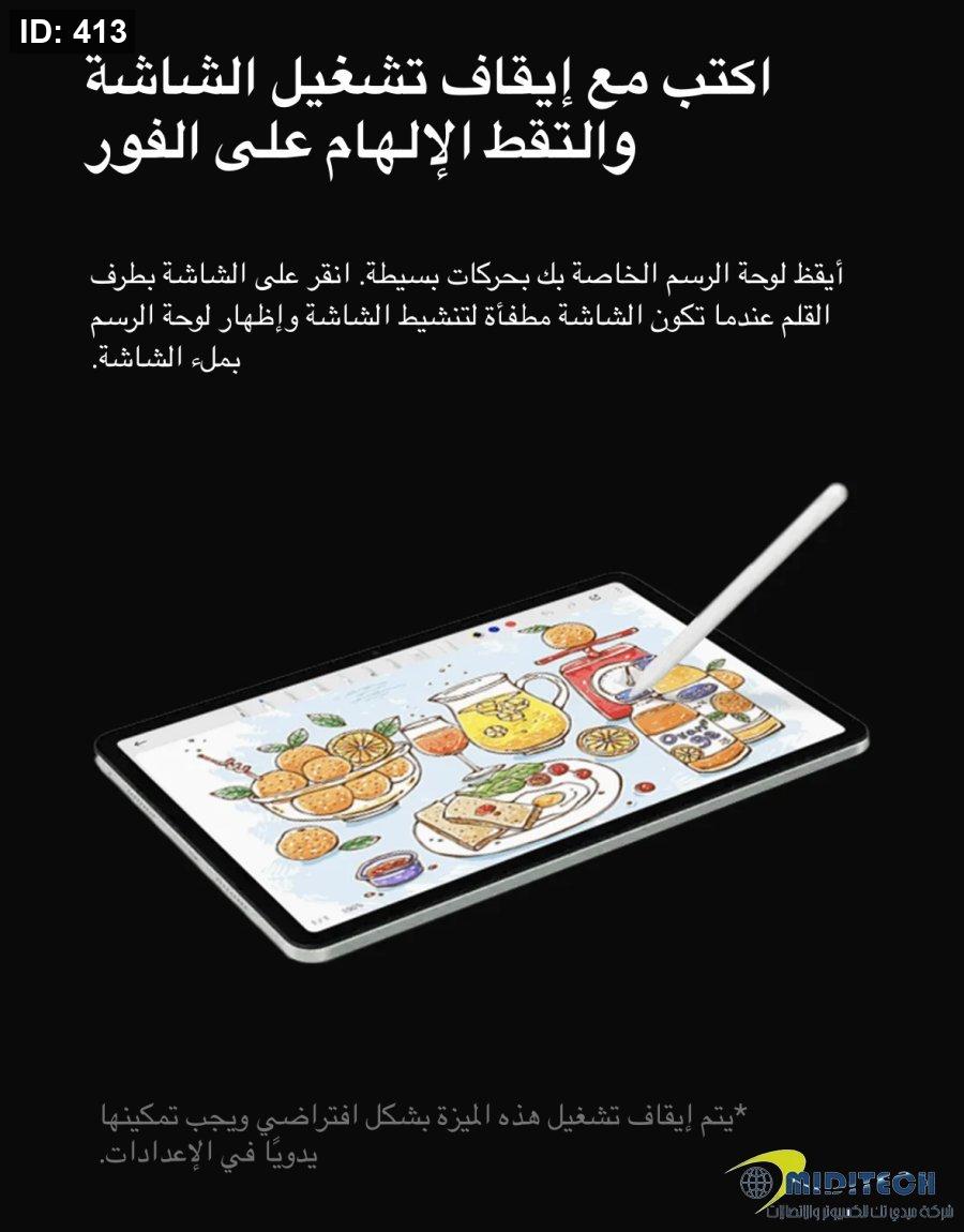 •وظيفة “تنشيط الشاشة بإيماءة” — عند النقر بقلمك على الشاشة وهي مُطفأة، بشاشة كاملة للكتابة.