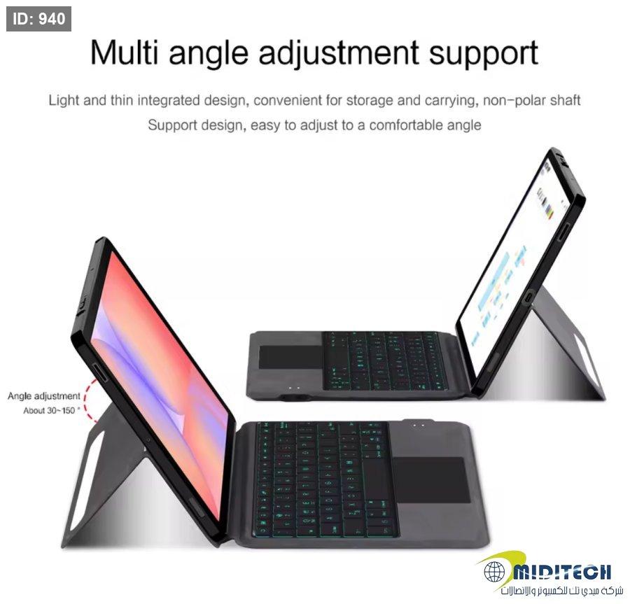 • كيبورد بلوتوث مضيء (Backlit) لكتابة مريحة في جميع الظروف.